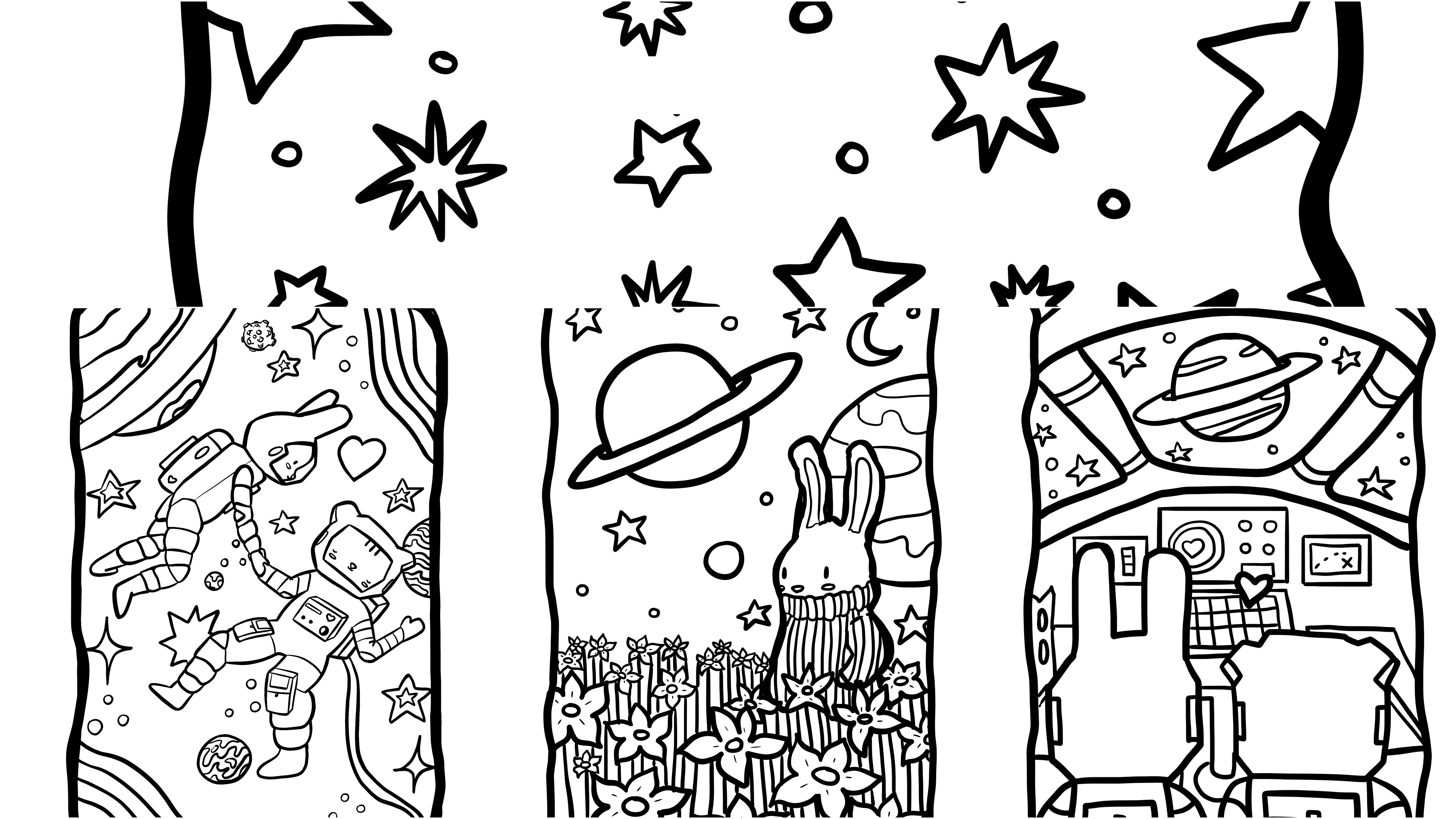 ¡Prepárate para colorear tu propio viaje artístico y espacial! Muchas gracias por apoyar mi camino artístico. Espero vernos pronto ♡